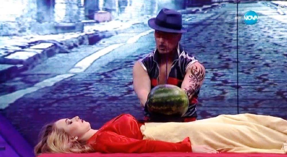 - Meisten Wassermelonen mit dem Kopf zerteilt“.